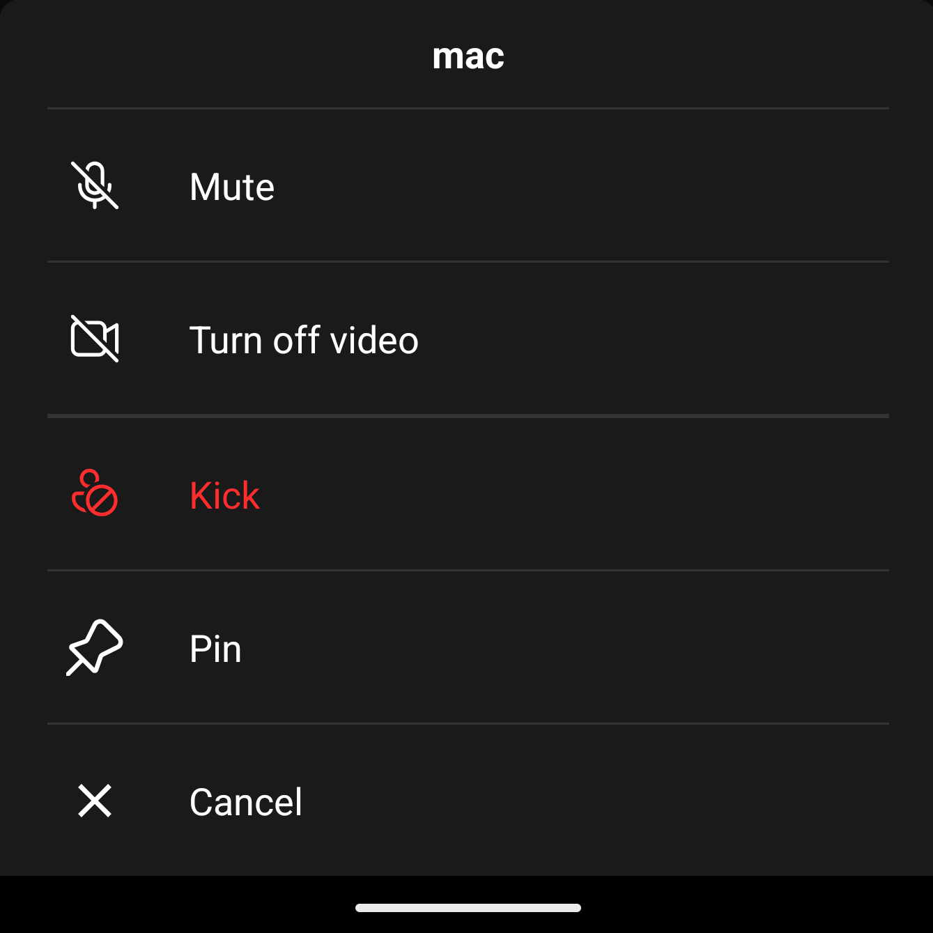 - Kick: Kick a participant from the room.