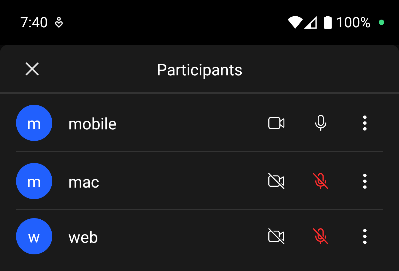 To show the list of participants in your app, you can use the RtkParticipantsFragment class.